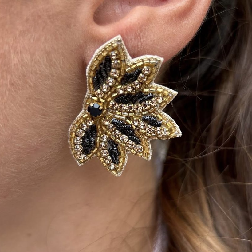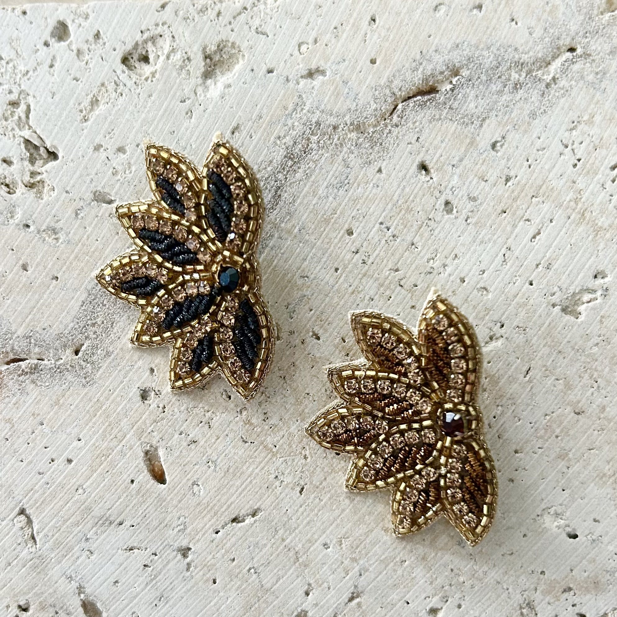 Boucles d’oreilles brodées à la main et doublées de cuir doré