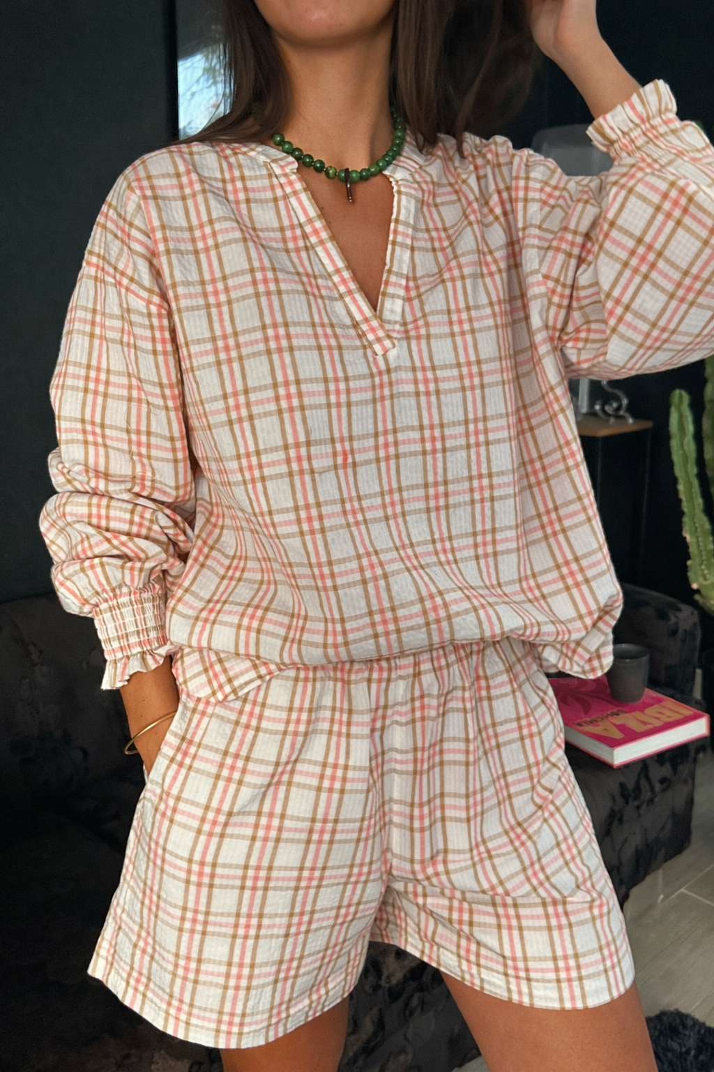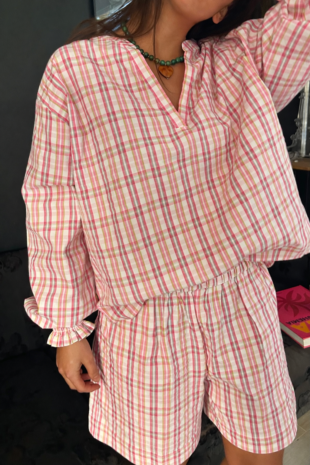 Carreaux marron / rose